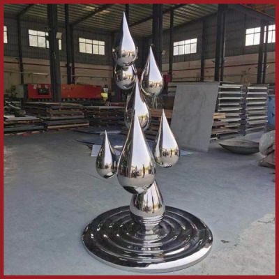 抽象不銹鋼鏡面水滴雕塑酒店戶外噴泉裝飾擺件