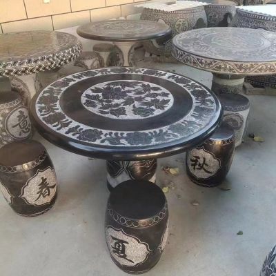 庭院仿古園林戶外一套青石浮雕石桌椅