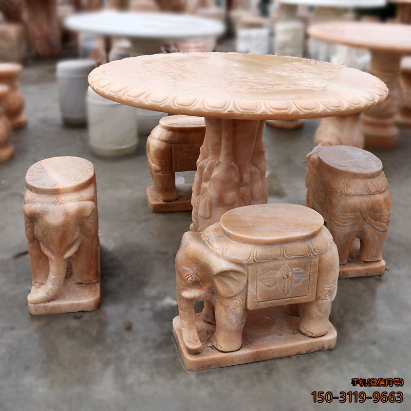 晚霞紅圓桌凳雕塑 晚霞紅圓桌凳雕塑