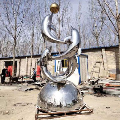 廣場(chǎng)一只大號(hào)玩球的不銹鋼海豚雕塑