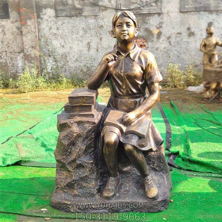 看書的小女孩,銅雕校園景觀擺件雕塑.圖片展示