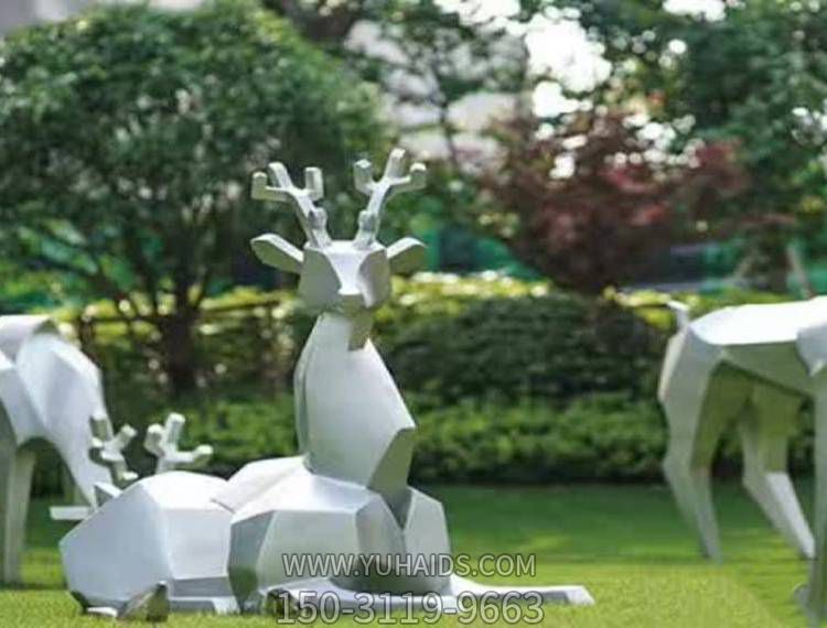 不銹鋼梅花鹿雕塑戶外大型抽象幾何鏤空擺件