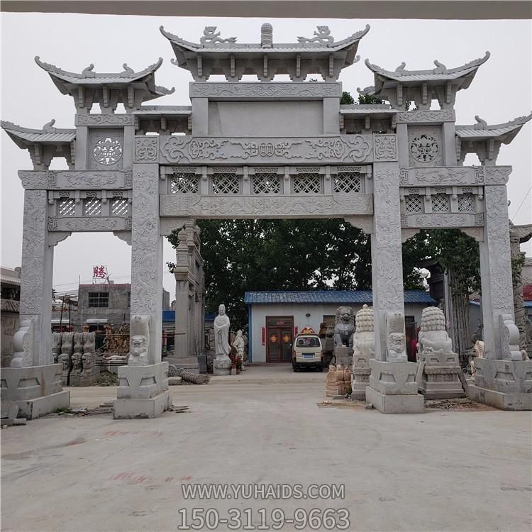 村口大型大理石三門石雕牌坊雕塑.詳細(xì)說(shuō)明