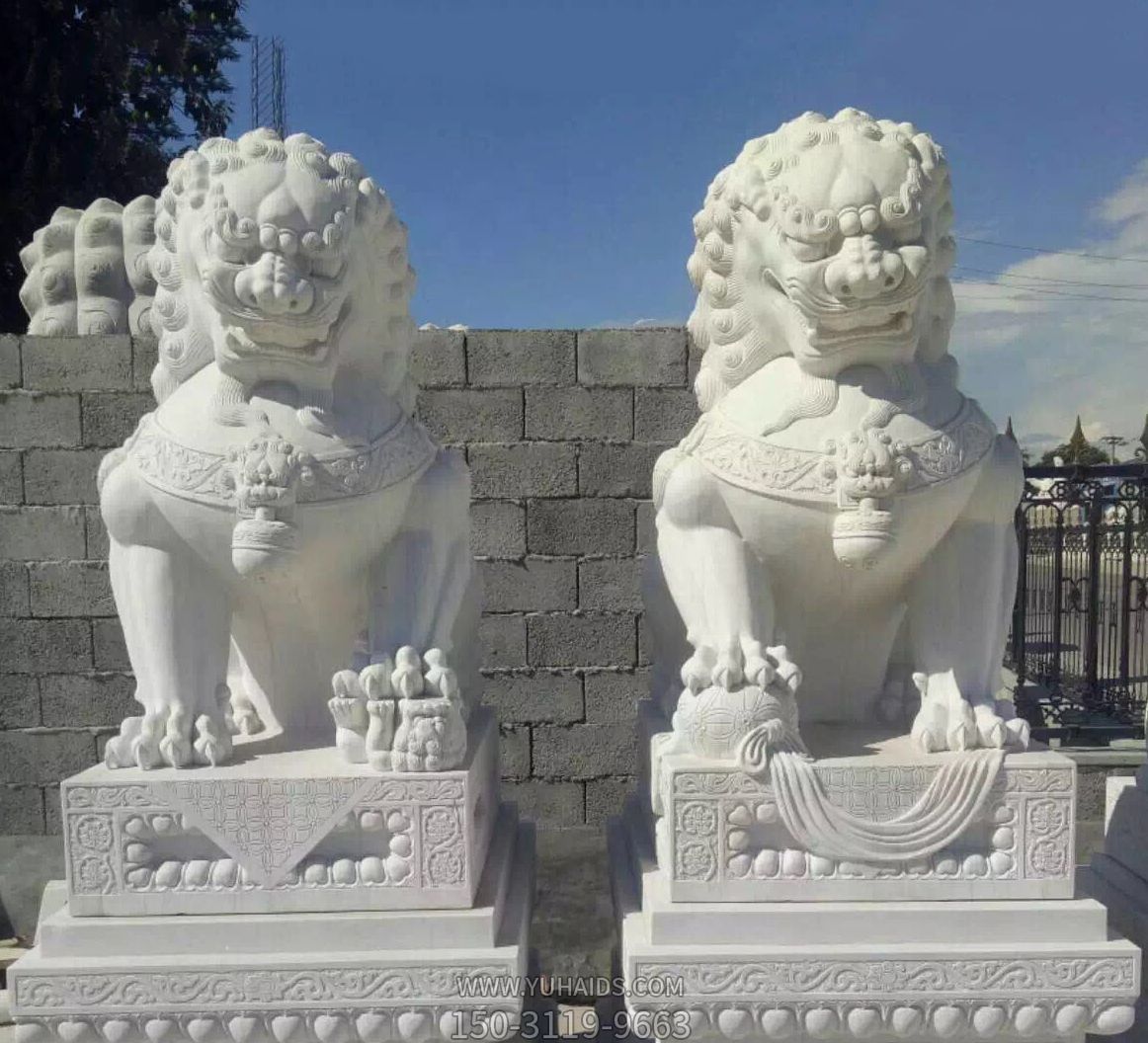 庭院別墅漢白玉石雕一對家用大門口的獅子雕塑 庭院別墅漢白玉石雕一對家用大門口的獅子雕塑