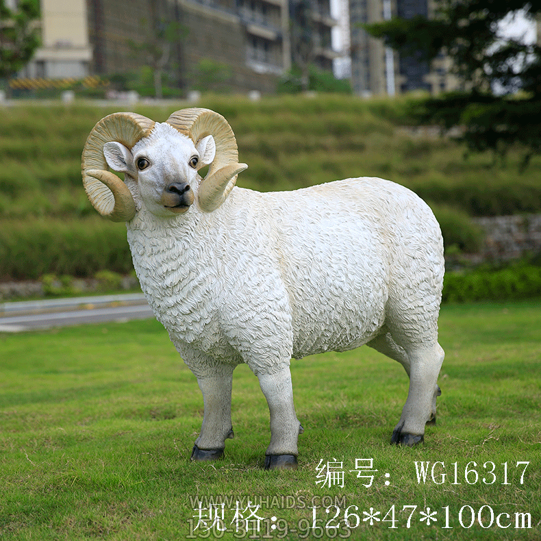 草地上一只歪頭的玻璃仿真綿羊雕塑.參數(shù)說明
