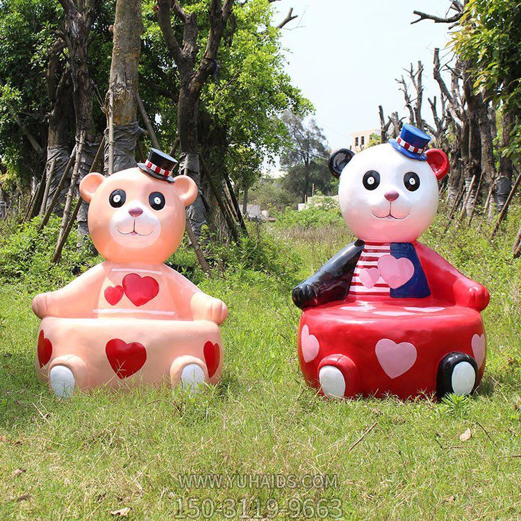 卡通彩繪熊貓玻璃鋼座椅凳子雕塑