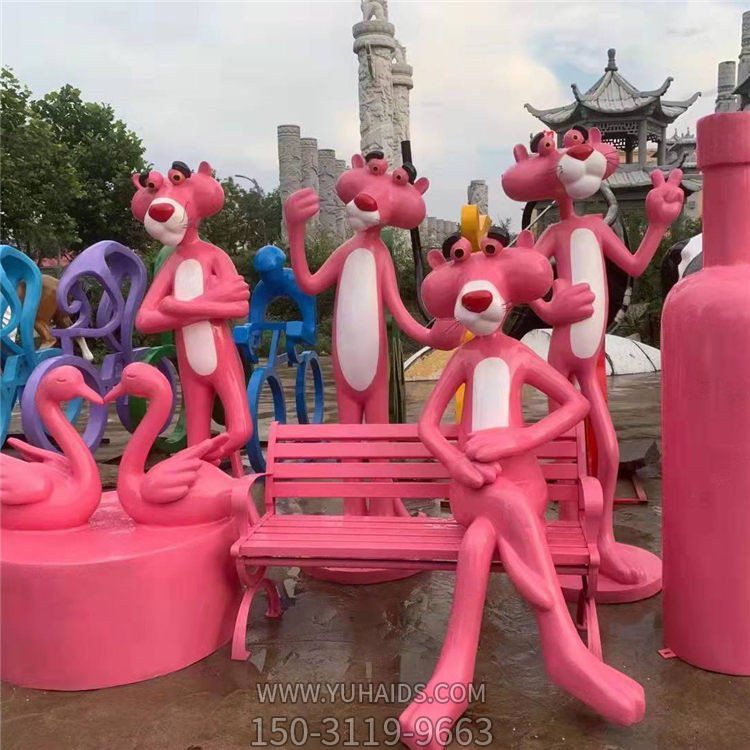 玻璃鋼網(wǎng)紅卡通粉紅豹游樂園小品擺件雕塑.圖片展示