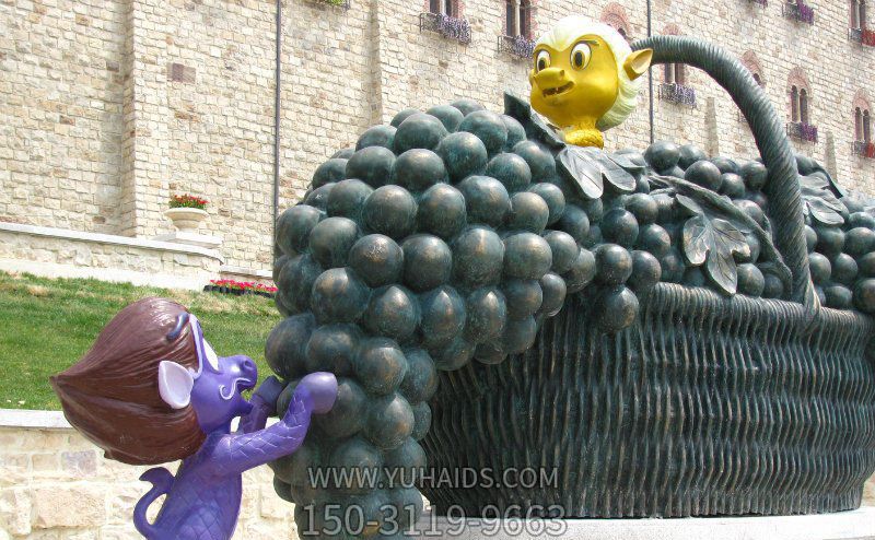 景區(qū)廣場(chǎng)公園裝葡萄的籃子景觀銅雕雕塑.圖片展示