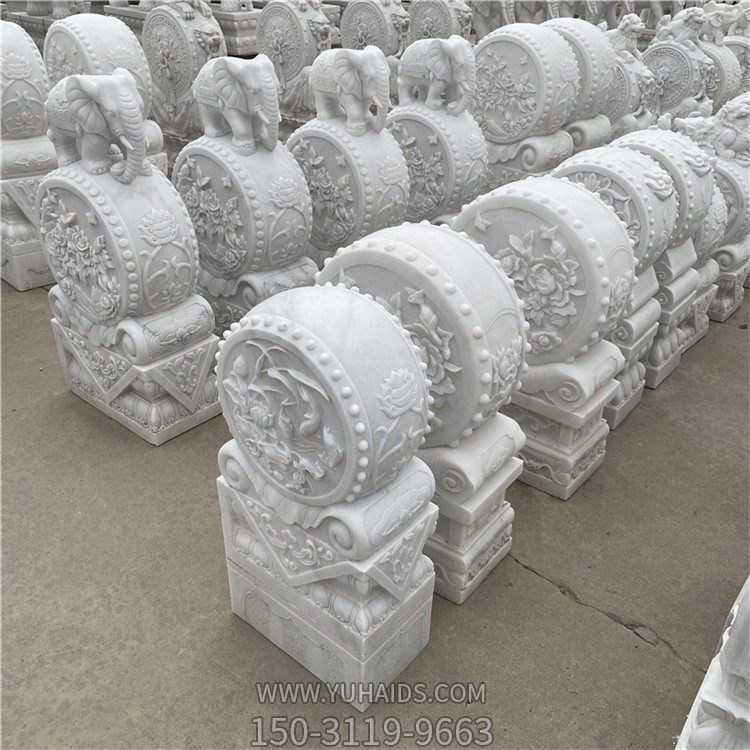 天然石雕漢白玉雕刻抱鼓石別墅園林門(mén)口石墩雕塑.圖片展示