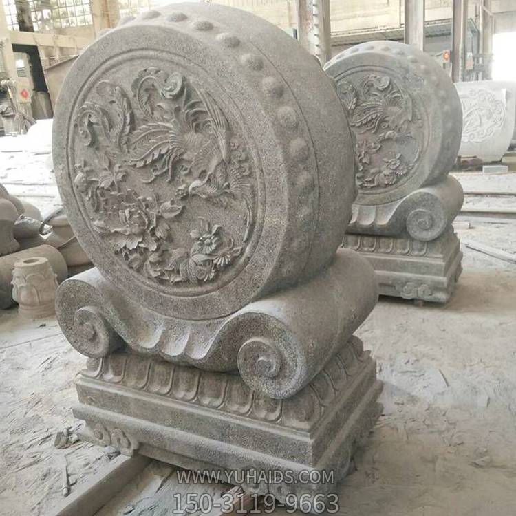 庭院門口一對(duì)浮雕鎮(zhèn)宅大理石砂石石雕抱鼓石雕塑.詳細(xì)說明