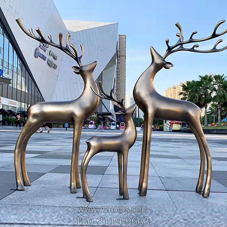 玻璃鋼仿銅戶外園林抽象梅花鹿雕塑.圖片展示