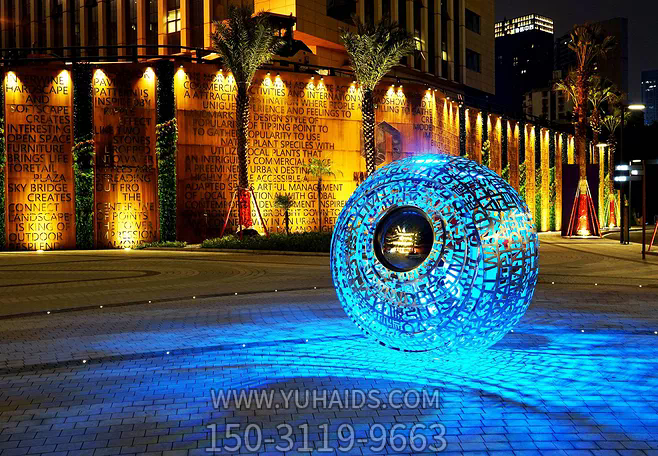 | 產(chǎn)品標(biāo)題 | 戶外廣場不銹鋼鏤空照明圓球雕塑 |