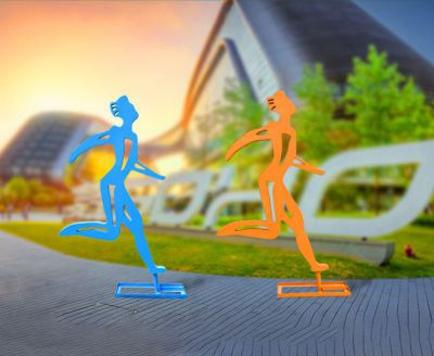 戶外草坪玻璃鋼彩繪跑步的抽象人物雕塑 戶外草坪玻璃鋼彩繪跑步的抽象人物雕塑