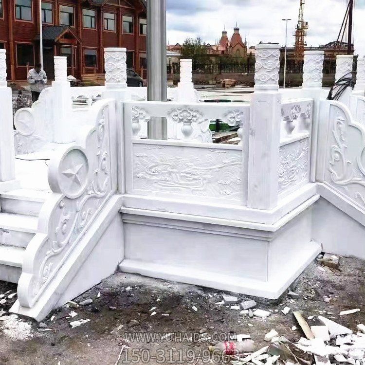 學(xué)校廣場擺放漢白玉雕刻升旗臺防護欄桿雕塑.圖片展示