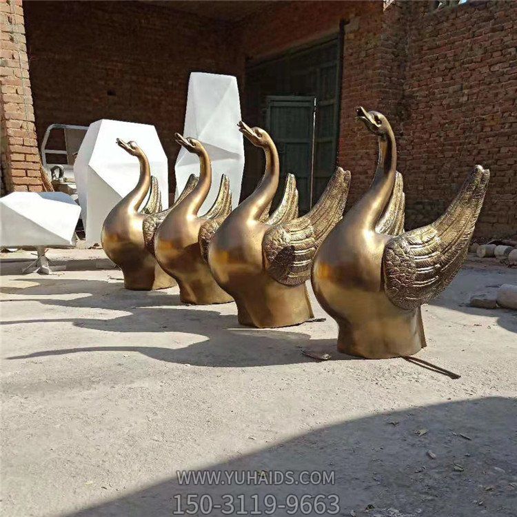 別墅水池擺放玻璃鋼仿銅噴水天鵝園林雕塑.圖片展示