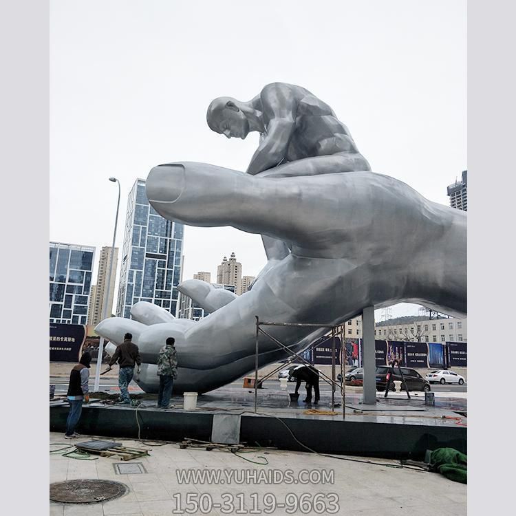 | 產(chǎn)品標(biāo)題 | 廣場(chǎng)大型創(chuàng)意景觀手掌上的不銹鋼抽象人物雕塑 |