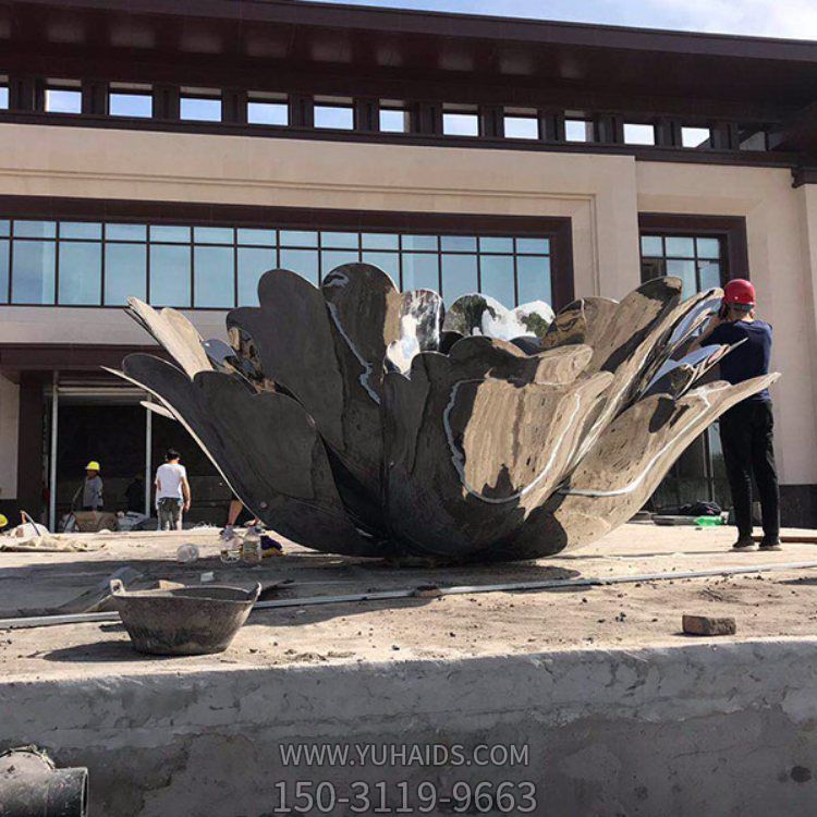 酒店室外不銹鋼鏡面荷花水池噴泉擺件雕塑.圖片展示