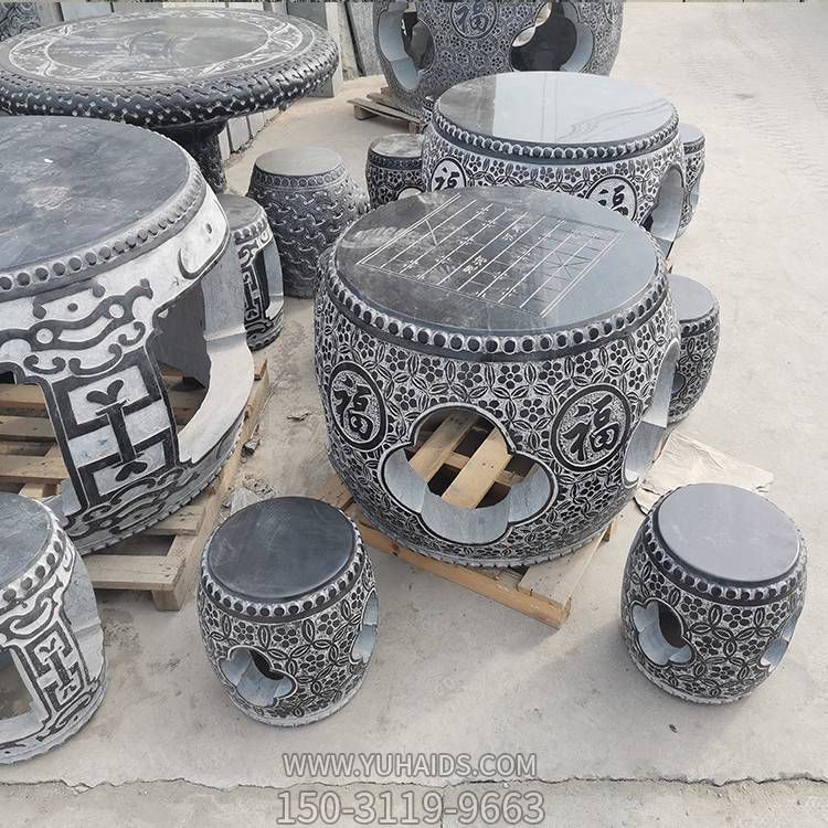 大理石石雕戶外庭院空心石桌石凳雕塑.圖片展示