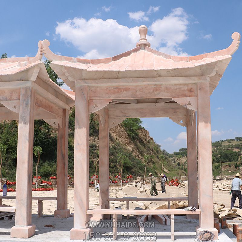 山區(qū)景觀擺放晚霞紅大理石四角休息涼亭雕塑 山區(qū)景觀擺放晚霞紅大理石四角休息涼亭雕塑