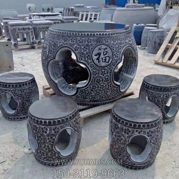空心青石石雕圓形石桌石凳雕塑 空心青石石雕圓形石桌石凳雕塑