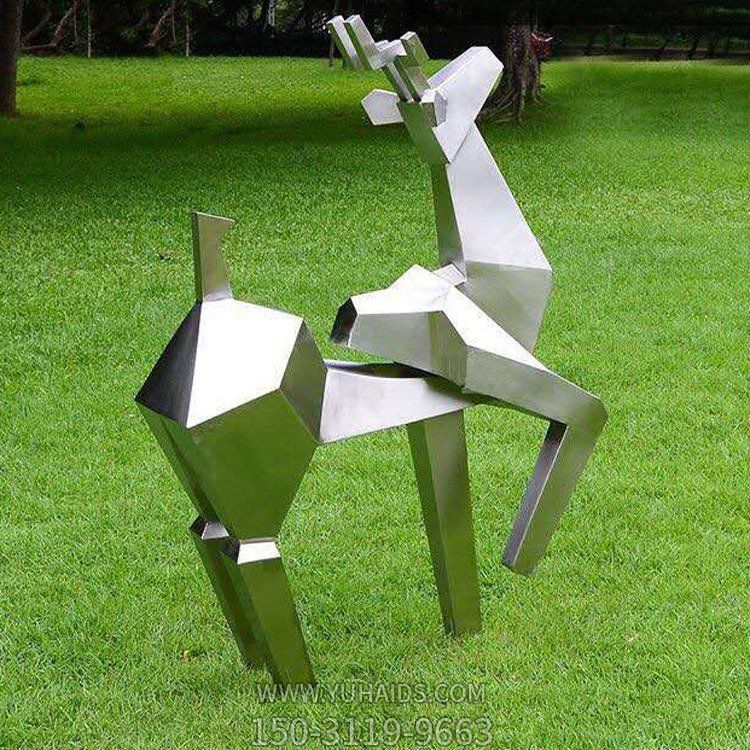 塊面鹿,抽象不銹鋼梅花鹿雕塑