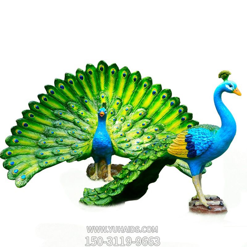 公園草地?cái)[放的玻璃鋼彩繪孔雀雕塑.參數(shù)說(shuō)明