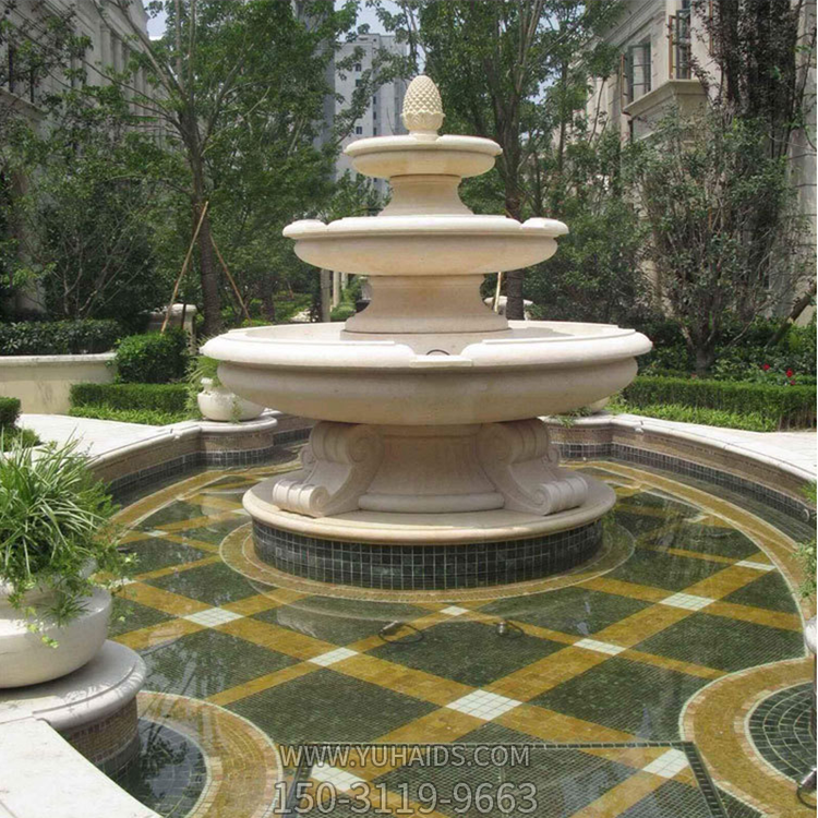 三層大理石花崗巖石雕噴泉水景擺件雕塑.圖片展示