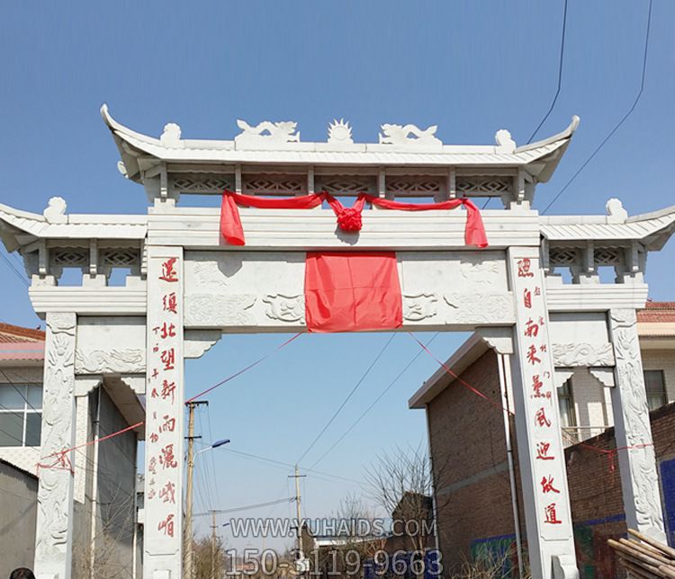 | 產(chǎn)品標(biāo)題 | 漢白玉浮雕村口擺放三門牌樓石雕雕塑 |
