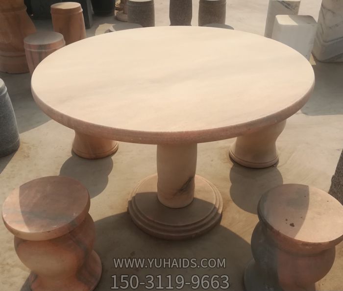 晚霞紅歐式圓桌凳庭院戶外擺放石雕雕塑