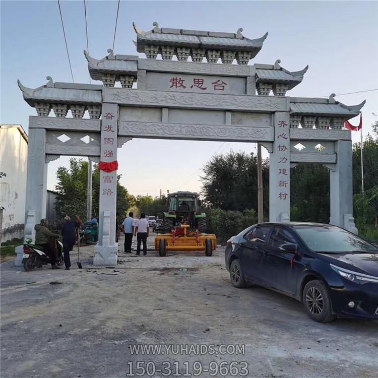 大理石石雕戶外農(nóng)村三門牌坊雕塑.圖片展示