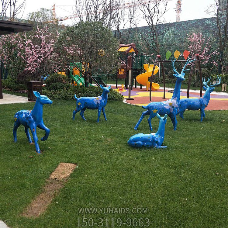 玻璃鋼噴漆鹿雕塑,草坪上的藍(lán)色梅花鹿