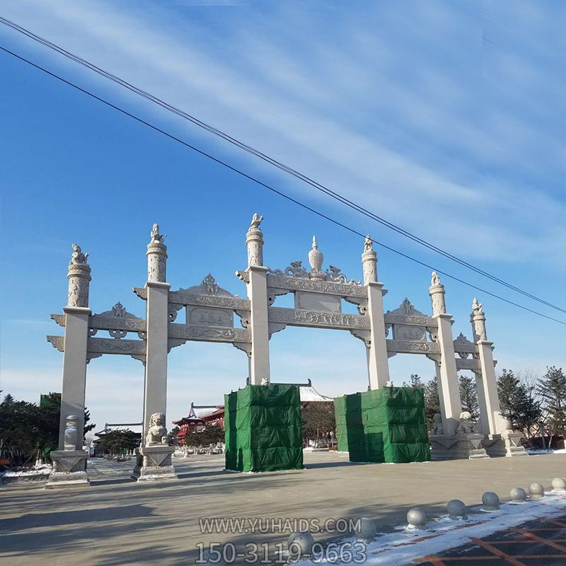 寺院景區(qū)五門石六柱新款漢白玉牌坊雕塑.圖片展示