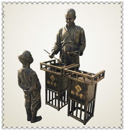 園林景區(qū)城市街道銅雕熬藥的古代人物景觀擺件
