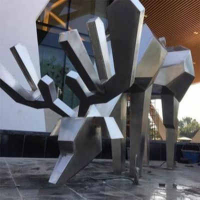 城市廣場(chǎng)不銹鋼幾何塊面大型抽象動(dòng)物