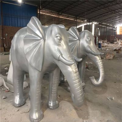 戶外大型不銹鋼幾何塊面抽象大象雕塑