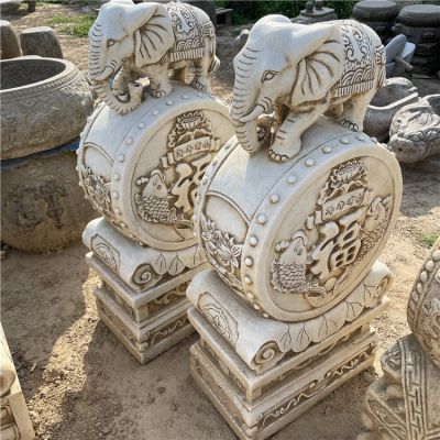 景區(qū)擺放大理石仿古吉祥如意大象抱鼔石