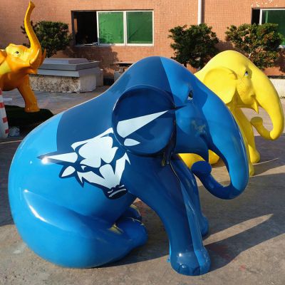 街道商場大型玻璃鋼創(chuàng)意彩繪卡通大象雕塑擺件