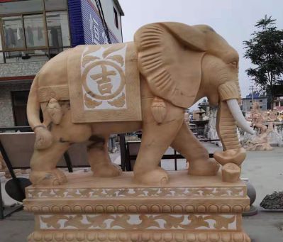 廣場(chǎng)景區(qū)黃蠟石石雕大象雕塑
