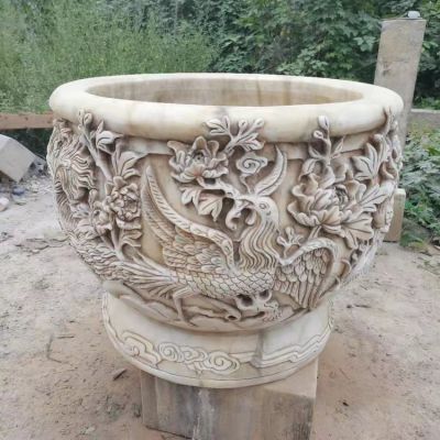 天然大理石浮雕鳳凰花開富貴中式庭院養(yǎng)魚水缸