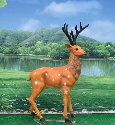 玻璃鋼彩繪梅花鹿雕塑