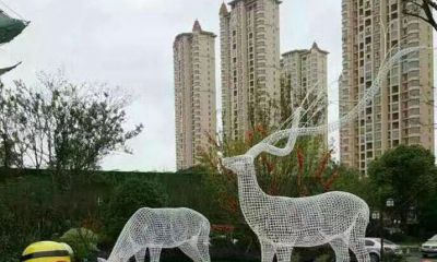 廣場不銹鋼鏤空抽象鹿景觀小品雕塑