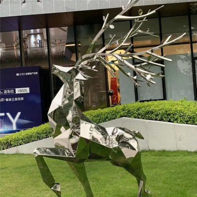 商場戶外擺放不銹鋼幾何鹿動(dòng)物景觀雕塑