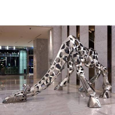 商場室內(nèi)擺放不銹鋼鏤空趴姿長頸鹿雕塑