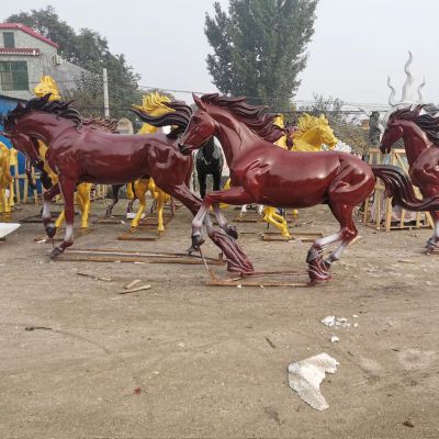 景區(qū)創(chuàng)意玻璃鋼彩繪奔騰的馬雕塑