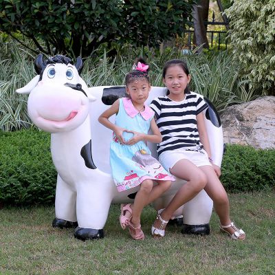 廣場一只可以坐兩個(gè)人的玻璃鋼牛雕塑