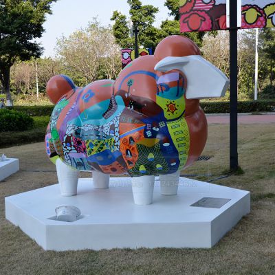街道上擺放的玻璃鋼彩繪綿羊雕塑