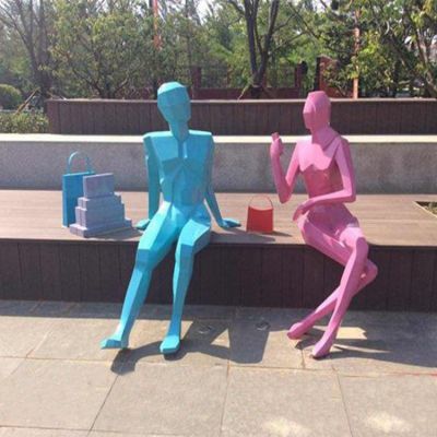 商場(chǎng)公園玻璃鋼幾何抽象休息的人物景觀