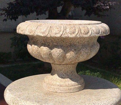 小區(qū)公園擺放黃銹石浮雕歐式花缽 花崗巖花盆