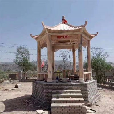 晚霞紅石亭子村莊文化中心擺放天然大理石涼亭