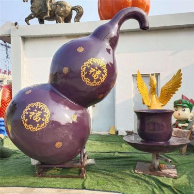 景區(qū)戶外廣場(chǎng)擺放玻璃鋼彩繪葫蘆流水噴泉